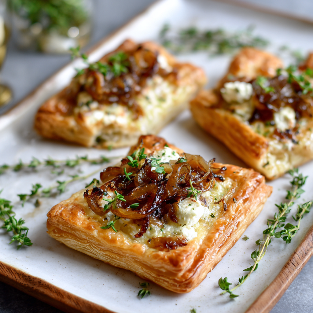 Perfect flavor balance – sweet onions, tangy goat cheese, and buttery pastry